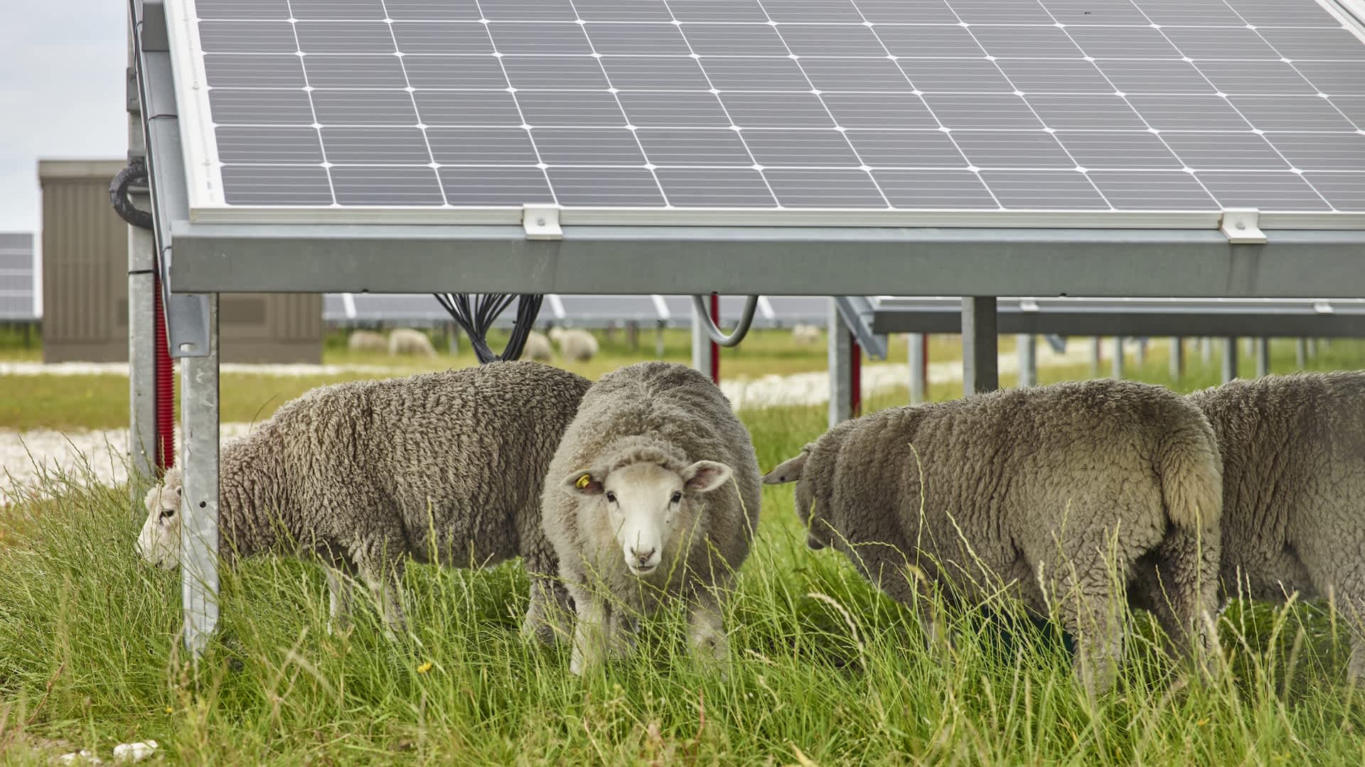 With sheep added into the mix, however, farmers can benefit even more from the lowered cost of maintenance as the animals graze beneath the solar panels.