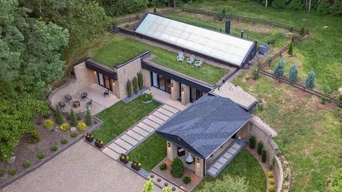 The sleek, earth-sheltered home was built in 1978 with sustainability in mind. It features eco-friendly elements such as glass walls, a 48-foot skylight spanning the entire interior, and a solar attic to flood the home with natural light, as real estate website Realtor.com reported.