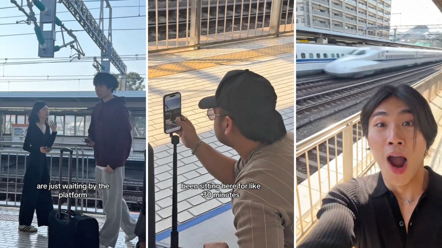TikToker Kai (@hwaniiee) and his friends were trying to record content at a Japanese train station, but there was one big problem — the trains were too fast.