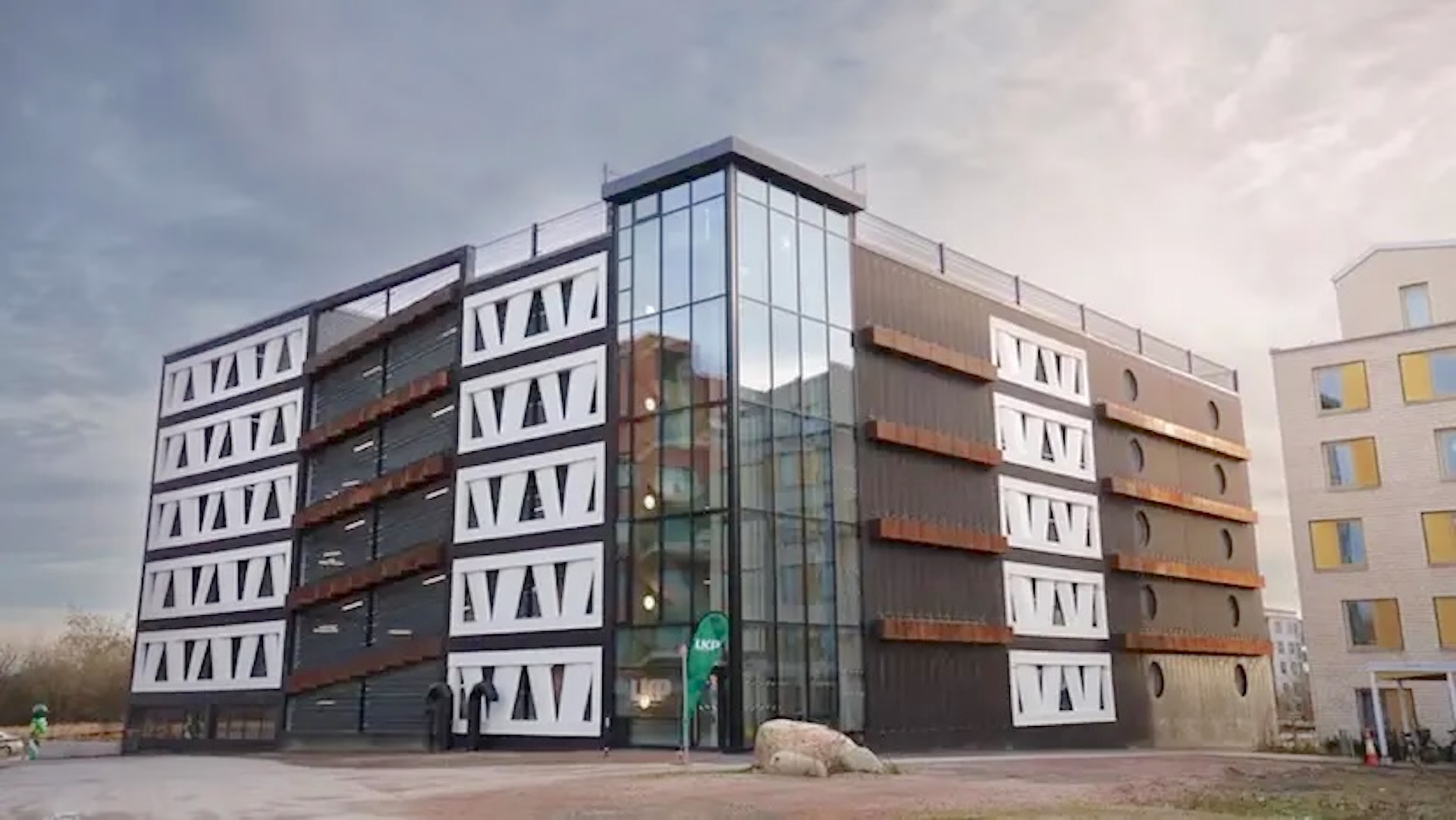 An ingenious parking garage in Lund, Sweden, is made in part from old wind turbine blades donated by energy company Vattenfall.