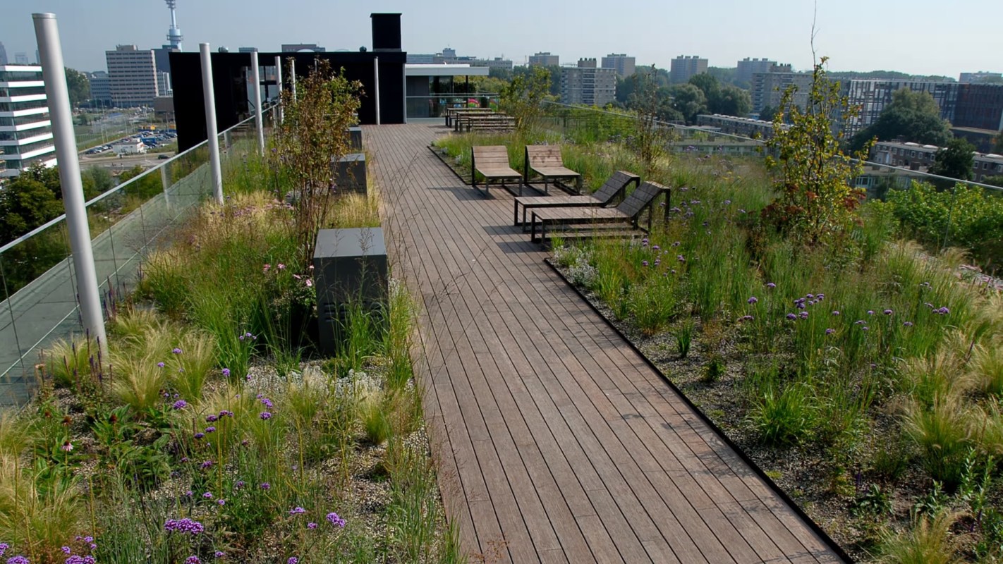 Resilio is a project installing 100,000 square feet of climate-adaptive roofing on buildings — including social housing complexes — throughout Amsterdam. This system goes a step beyond green roofing to create blue-green roofing that can store excess water, according to The Guardian.