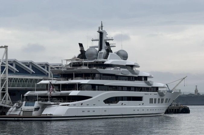The yacht is called Amadea, a 348-foot superyacht seized from Russian ownership in 2022 and now under U.S. government control.