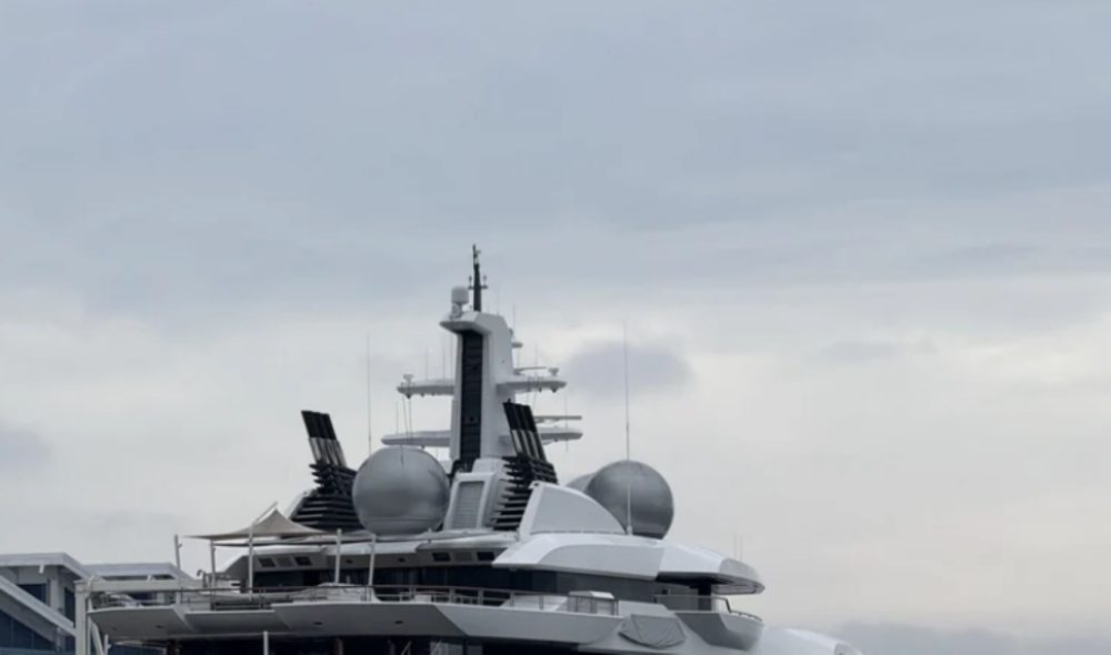The yacht is called Amadea, a 348-foot superyacht seized from Russian ownership in 2022 and now under U.S. government control.