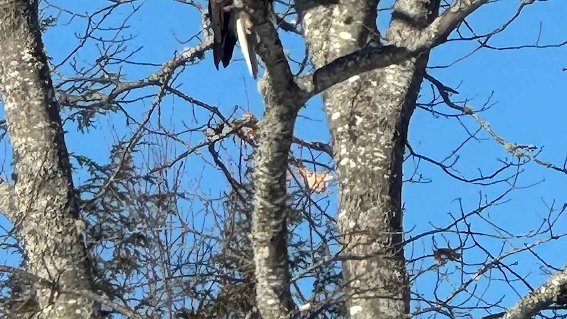 A birdwatcher shared their excitement with the online community after observing a pair of bald eagles roosting in their backyard in Maine.