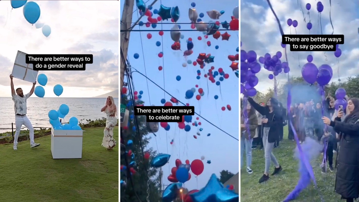 In a TikTok compilation of balloon releases posted by LiveKindly (@livekindly), a page dedicated to sustainable living tips, no-waste DIYs, and plant-based news, the video shows gender reveal parties, funerals, and other celebrations where hundreds of balloons are let go into the sky. The clip pleads with viewers, "There are better ways."