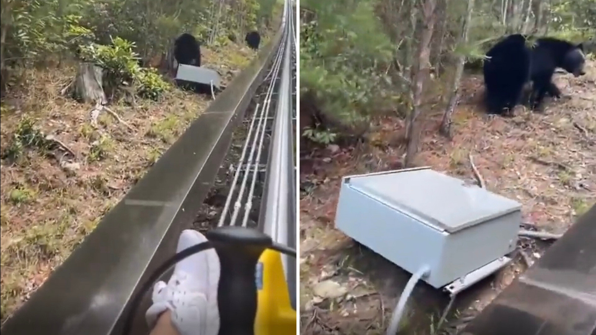 In the r/interestingasf*** subreddit, a Reddit user posted a video of what appears to be someone riding a mountain coaster through Gatlinburg, Tennessee. The coaster travels slowly through a wooded area and passes two black bears that are very close to the track and the exposed rider.