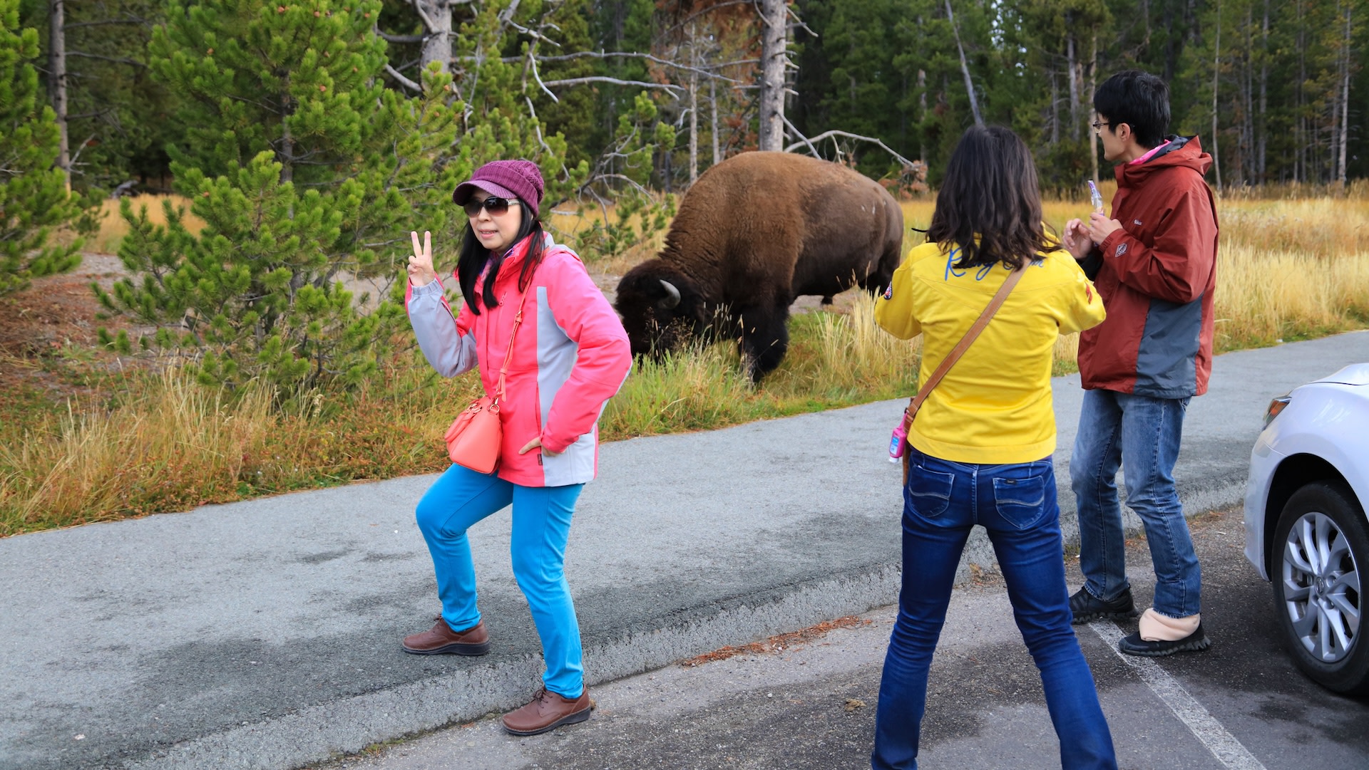 While Yellowstone is an exciting place to spot wild animals in their natural habitat, getting this close is a bad idea. The bison is clearly irritated and uncomfortable. When wild animals feel threatened, they may charge or attack humans. This can lead to injury or even death.