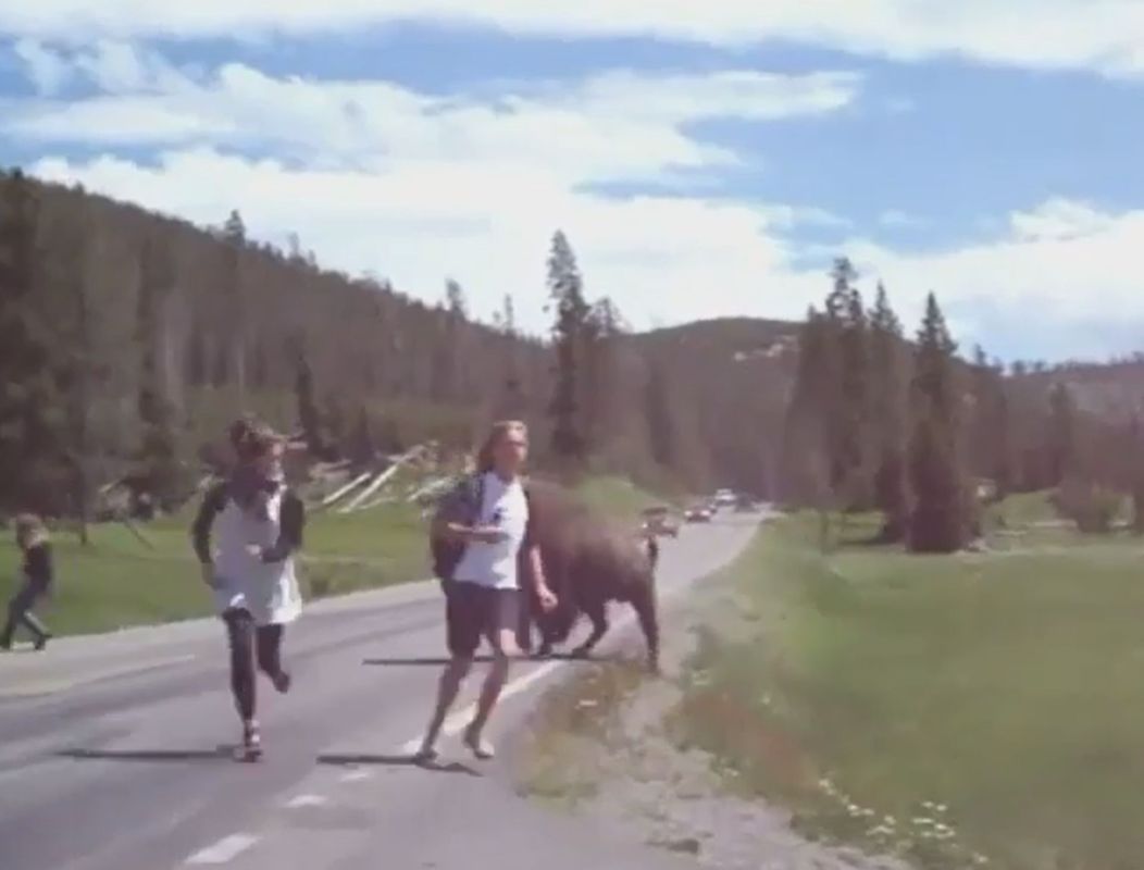 They could easily have been hit by oncoming traffic, or the bison could have run into a vehicle — and that would have ended badly for both parties.
