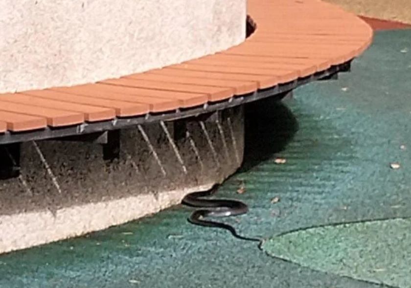 The sighting was reported to the authorities, but the animal had slithered away before it could be safely removed from the park. Residents were concerned about the danger the snake could have posed to children. Some were also worried about the park's cats and those who feed the stray felines.