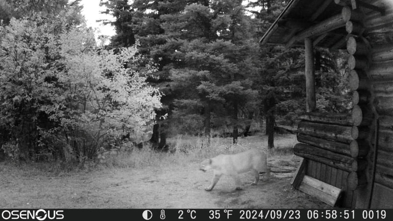 What the big cat was doing by the cabin was unclear. The original poster did say they were in Montana and described their living space as a "primitive cabin."