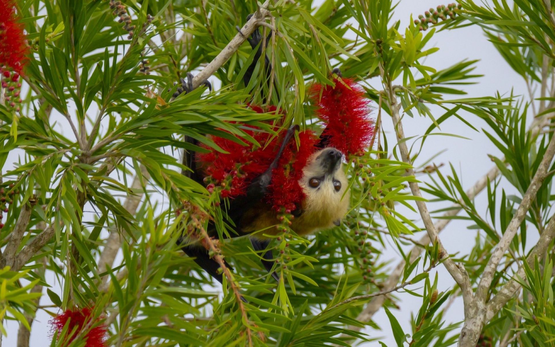 According to the Guardian, the flying fox on this Australian island is a tiny, "fluffy" bat whose numbers have significantly dwindled since the 1980s.
