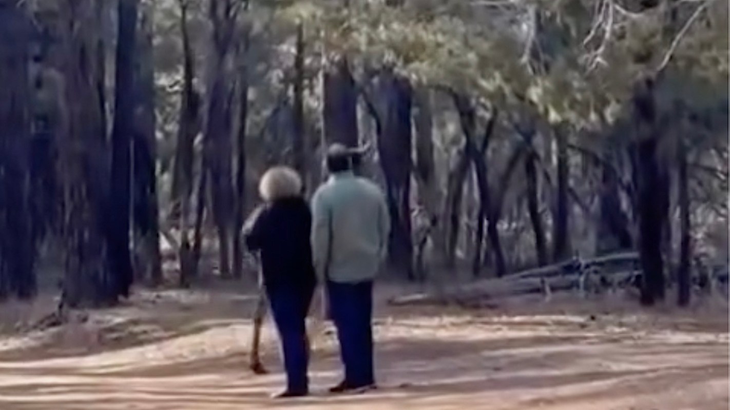In the first of two short videos captured from a safe distance, a couple faced away from the camera. They were just feet from the very large elk.