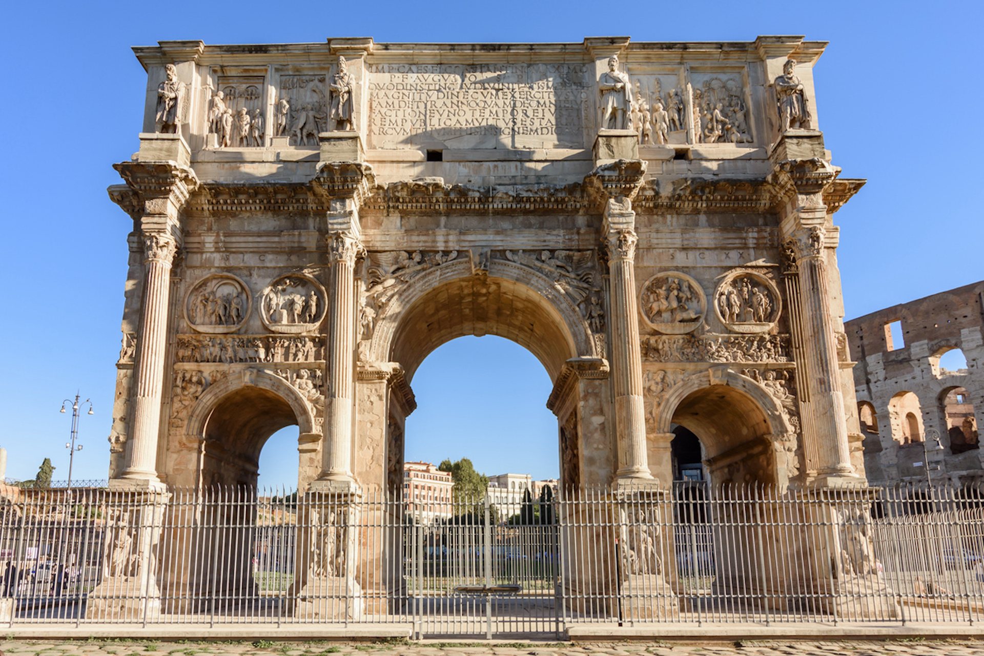 The arch is nearly 70 feet tall and was constructed in 315 A.D. to honor Emperor Constantine's military successes. It forms part of Rome's Colosseum Archaeological Park, one of the biggest draws for travelers to the city.