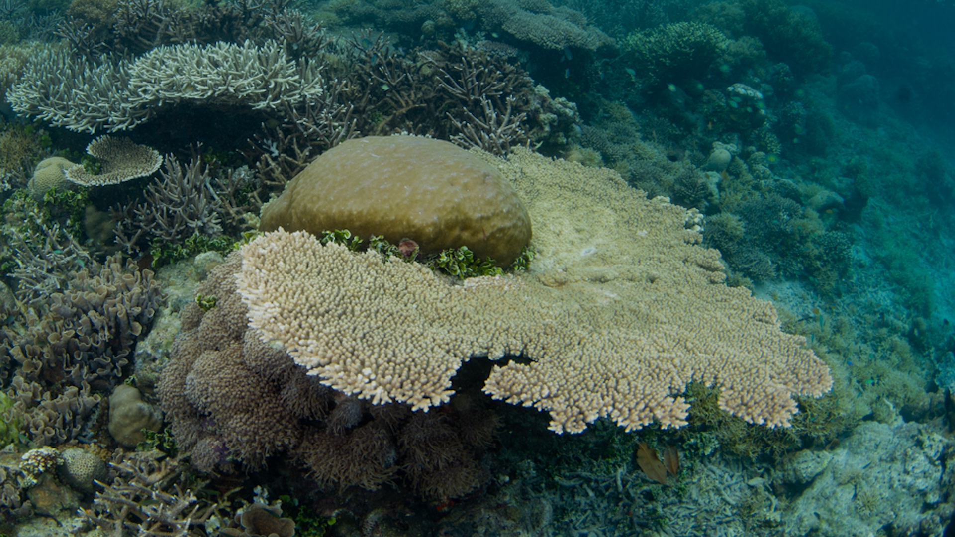 Coral enjoys a symbiotic relationship with an algae species called zooxanthellae, which is its primary food source and provides its vivid color. But when coral becomes stressed, it expels the algae, giving it a bleached appearance.