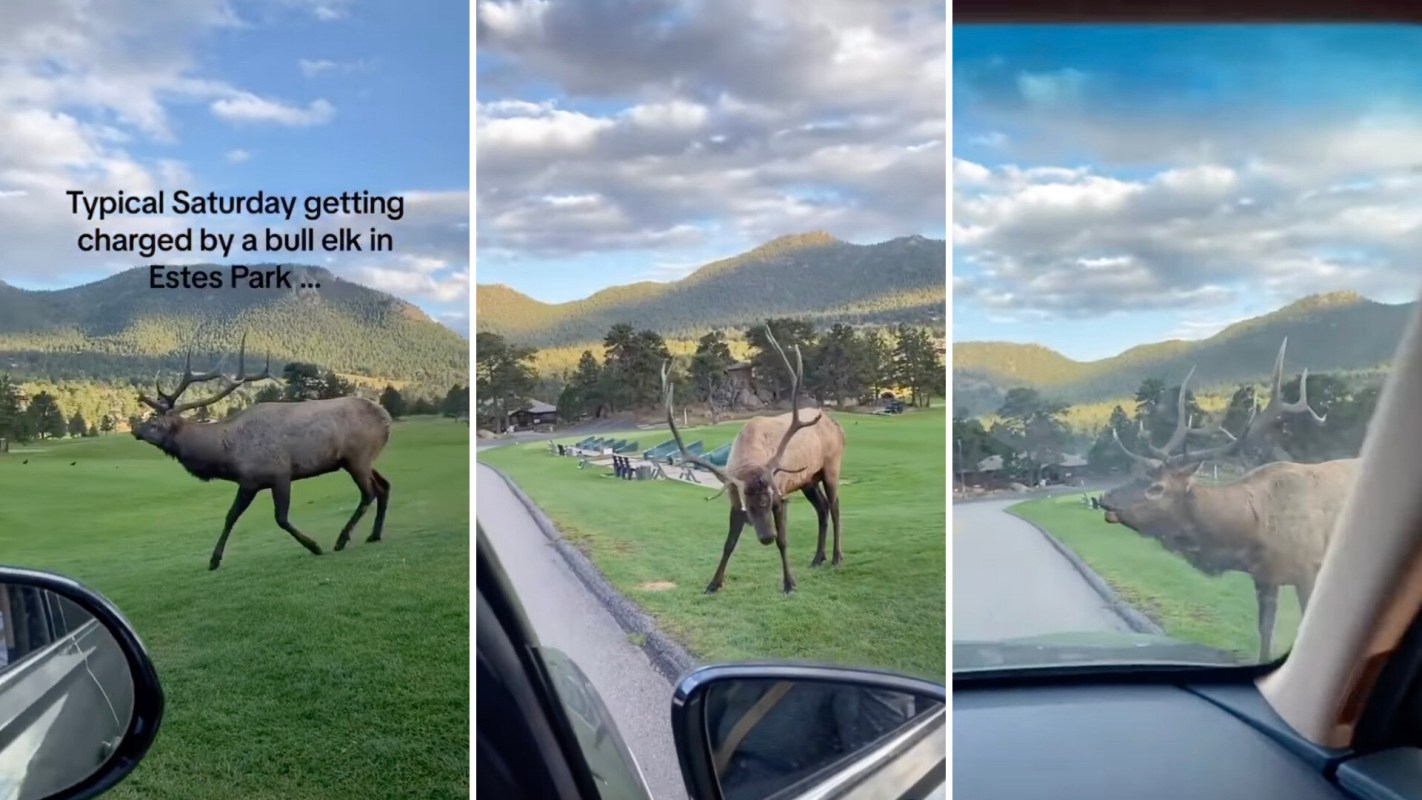 Even if you're behind the wheel of a car, that won't stop an elk from letting you know its feelings, as one group in Estes Park in Colorado found out.