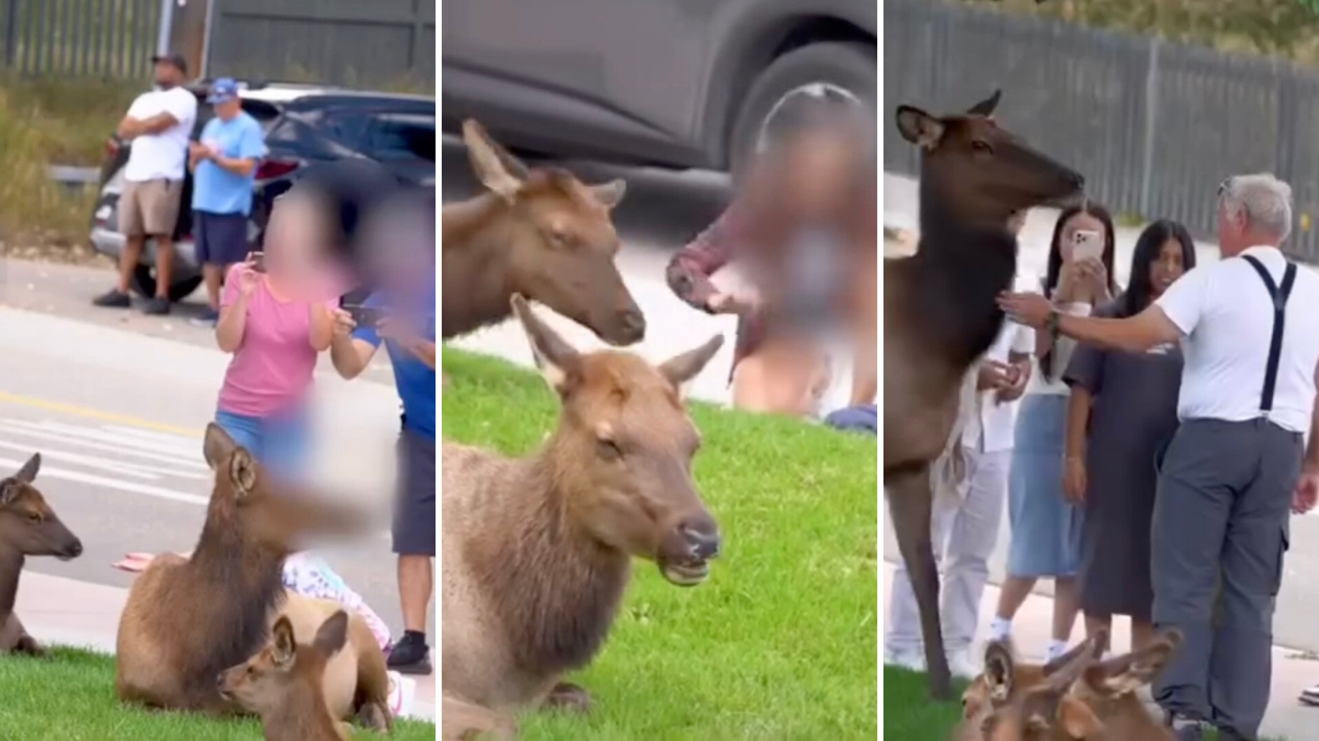 A video reshared on Instagram by Tourons of Yellowstone (@touronsofyellowstone) depicts multiple tourists petting elk around Estes Park, Colorado.