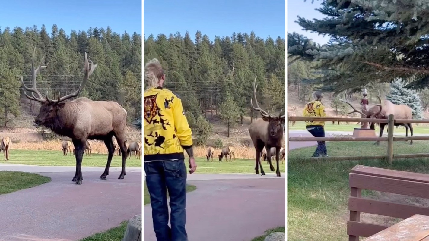 Approaching wildlife is always a dangerous idea, especially during elk rut season. Bull elk tend to be aggressive during this time, as demonstrated by the one in the video, which displays lowered antlers and moves aggressively toward the harasser.