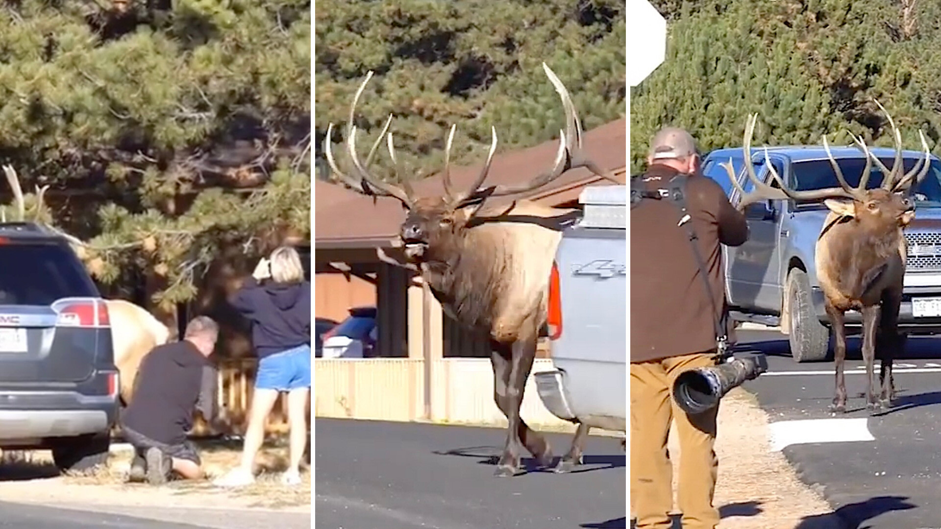 Fortunately, one enormous elk roaming near tourists appeared to be a gentle giant. Otherwise, things could've been much worse for them as they took photos mere feet away.