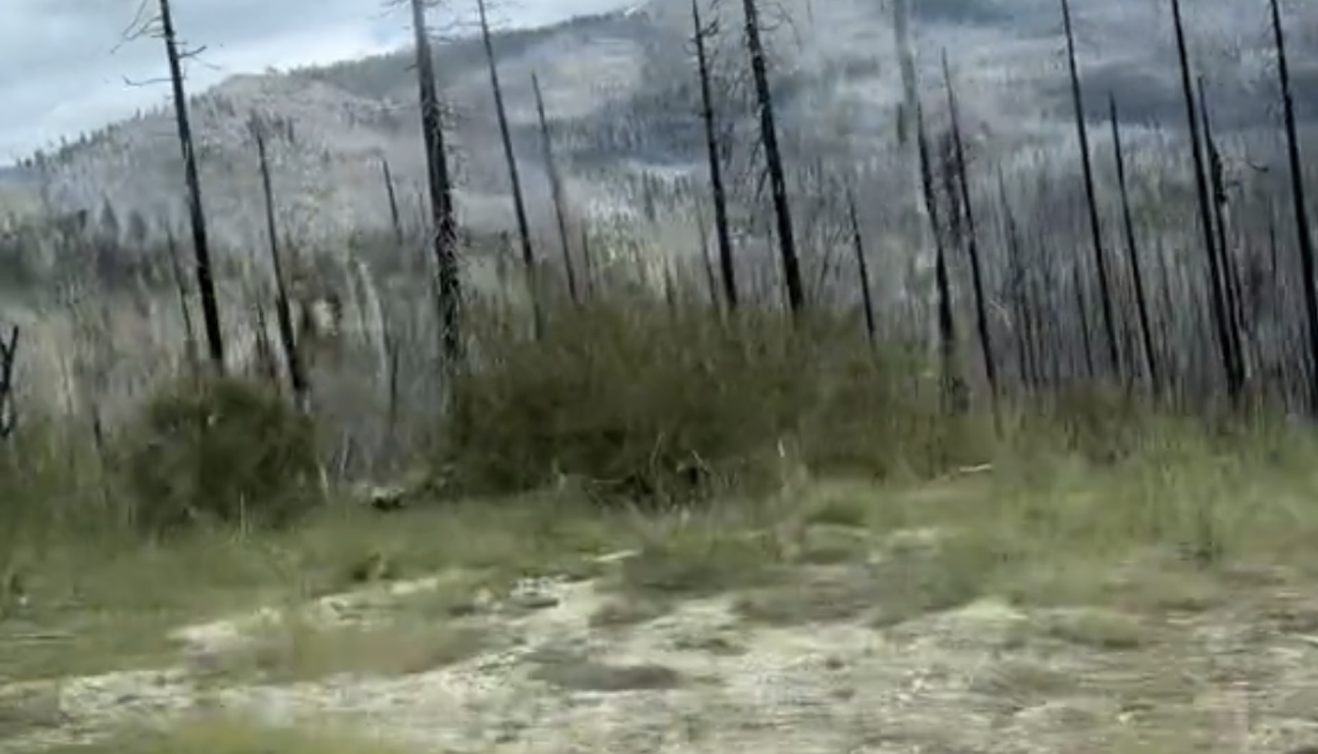 In his video, Dickson shows a stretch of forest that has been burned to ashes in a wildfire. He points out that it was a monoculture forest, which is made up of a single tree species and planted as a farm for timber production.