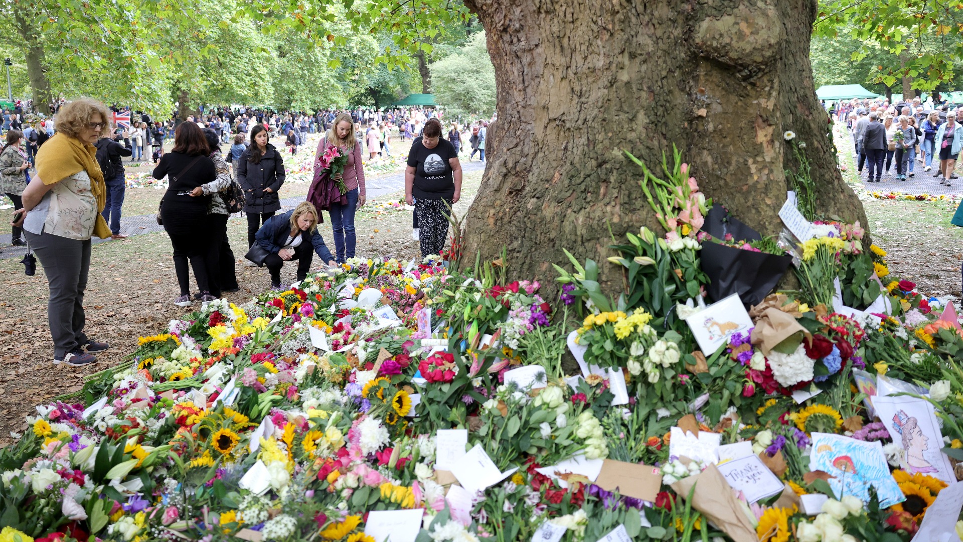 In London, mourners are flocking to the parks around Buckingham Palace, leaving "floral tributes" to Queen Elizabeth II.