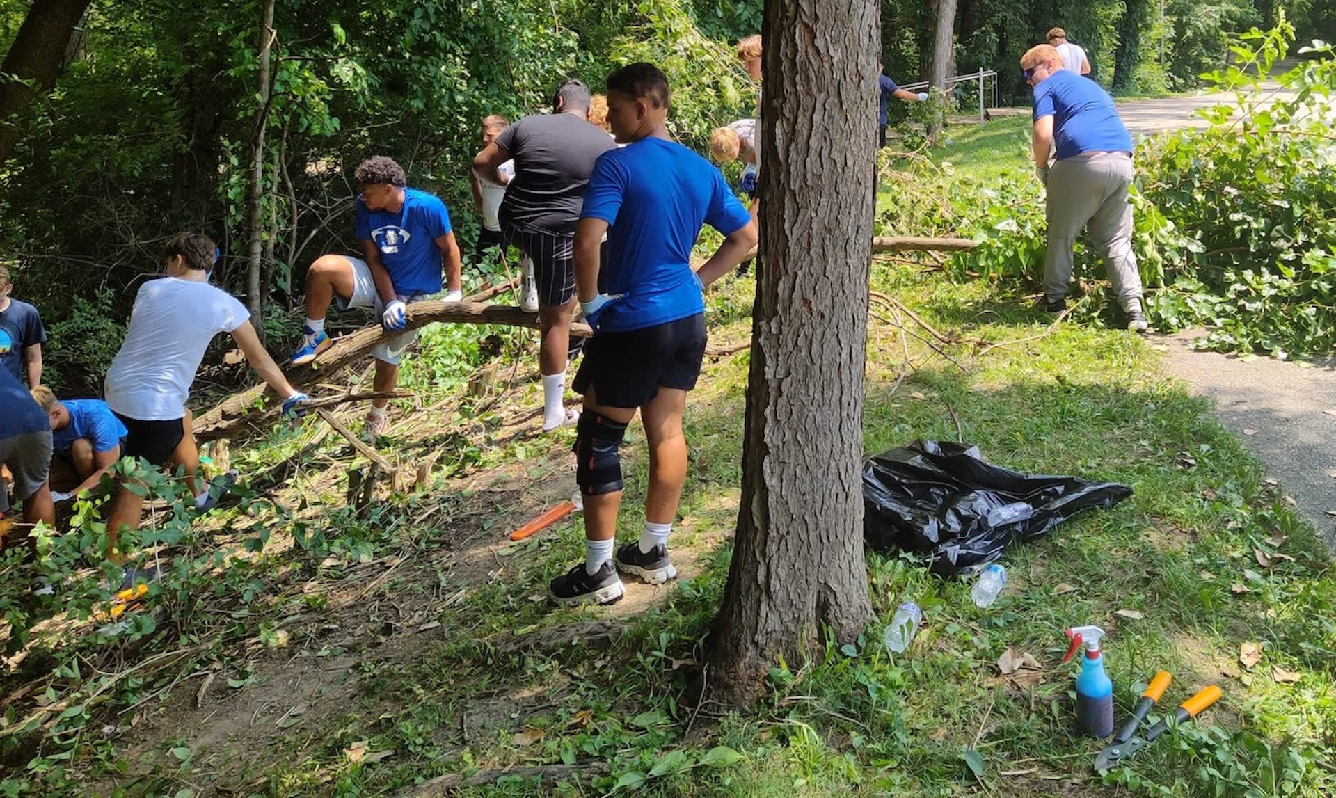 A group of helpful high school football players in Columbus, Indiana, teamed up to rid a local park of invasive species like Asian bush honeysuckle and kudzu.