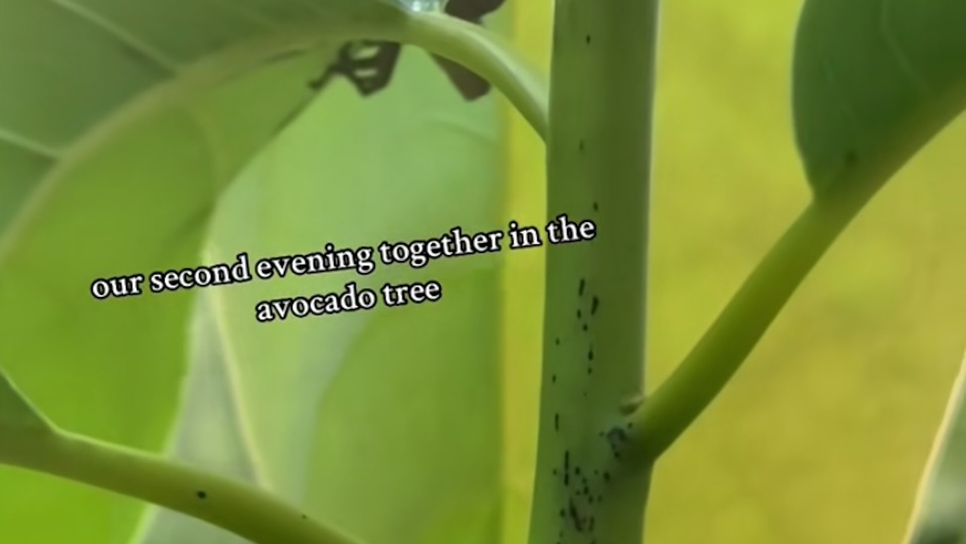 Ashley Franz, a TikToker and native plant gardener (@ashleymfranz4), shared a whimsical video of a small frog sitting gently on a large leaf in their avocado tree.