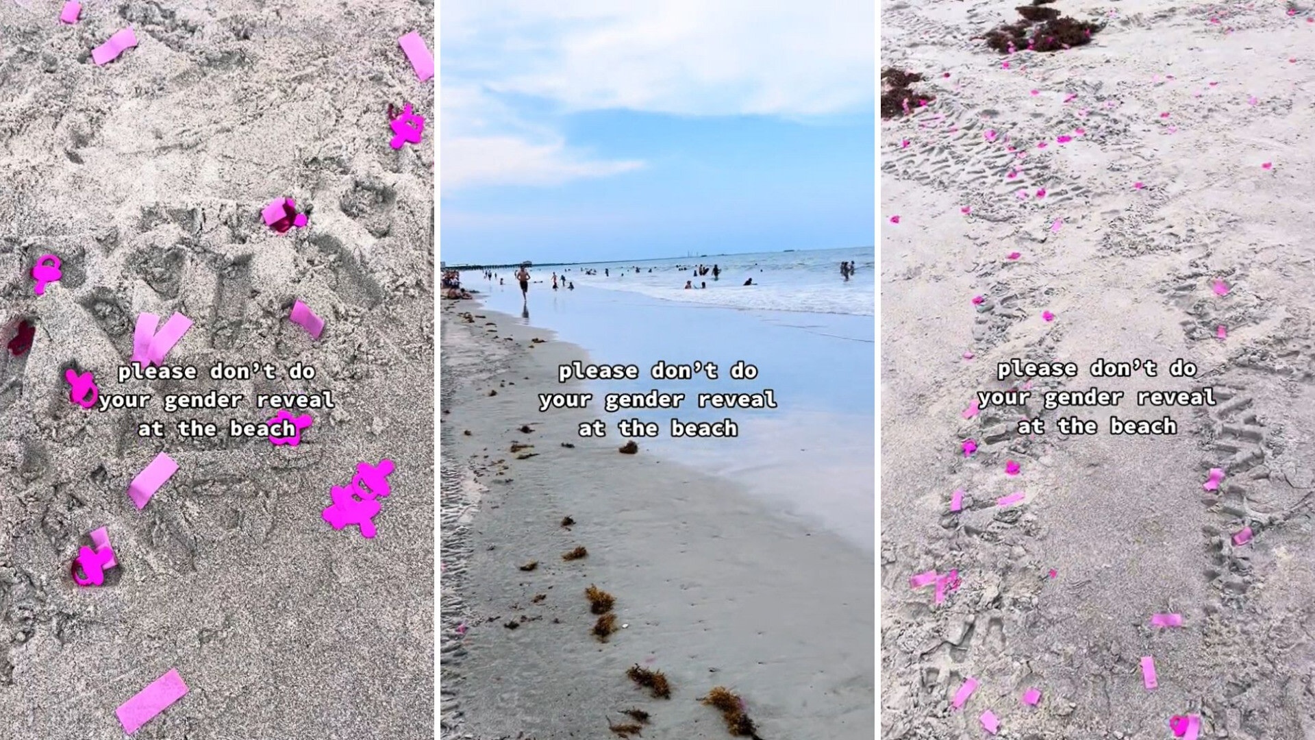 "Please don't do your gender reveal at the beach," they wrote.