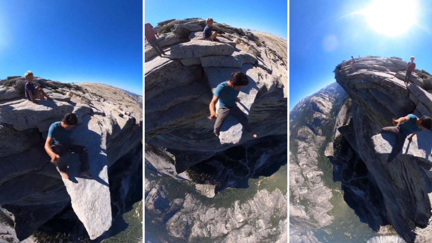 One video posted on the Instagram page, Tourons of Yellowstone (@touronsofyellowstone), which is dedicated to exposing tourists who don't follow the rules in the parks — with "touron" being a combination of "tourist" and "moron" — shows a man inching out on a rock ledge off an incredibly high cliff, the Half Dome at Yosemite National Park.