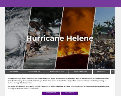 All Hands and Hearts is starting a 12-month program with a funding target of $2 million to rebuild schools and homes across North Carolina and Florida.