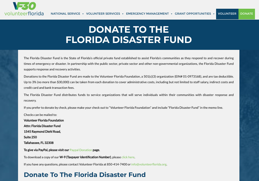 There's also the Florida Disaster Fund, the state's official private fund for emergency and disaster relief that partners with the public and private sectors and other non-governmental organizations. The fund falls under the purview of the Volunteer Florida Foundation and supports recovery initiatives by offering food, household goods, and home repairs.