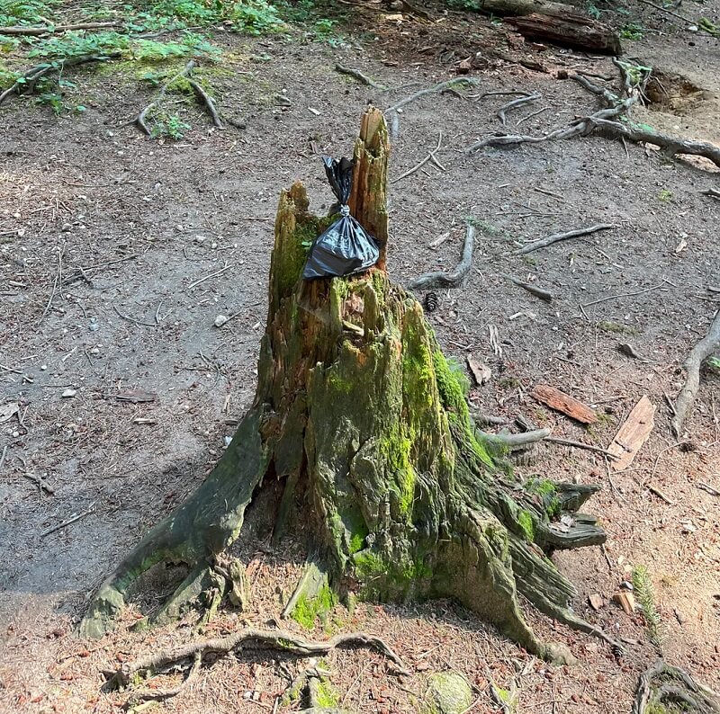 The hiking spot in British Columbia, Canada, has been littered with full dog poop bags.