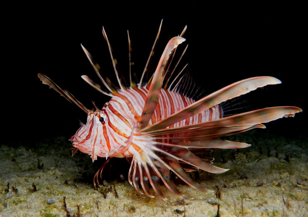 The lionfish are an invasive species with few natural predators and a high predation rate on native species. This means not many animals hunt them, but they love to hunt native animals.
