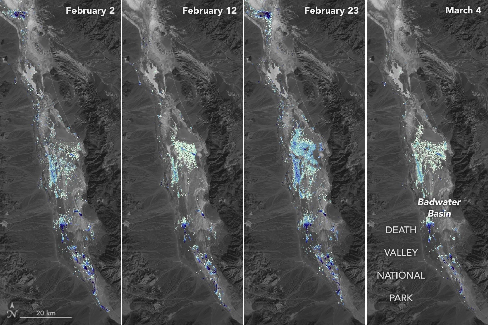 Lake Manly, which has reappeared before, expanded to about six miles long and three miles wide after more record rain in February. Over weeks of measurement, its depth ranged from less than 1.5 feet to about three feet, according to researchers who used water level data from SWOT and land elevation information from the U.S. Geological Survey, per Phys.org.