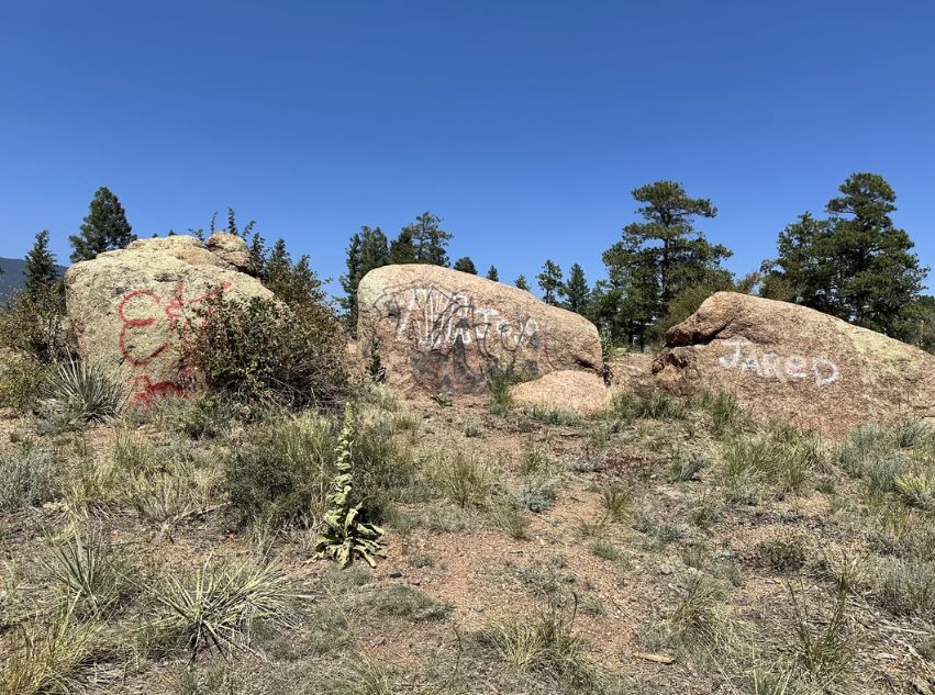 A hiker enjoying the serene beauty of the Colorado mountains was dismayed and angered to find something highly unnatural obstructing their view: spray paint.