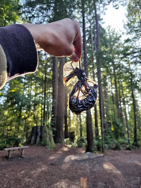 The post was accompanied by a photo of the gorgeous forest with a full doggy bag held up, seriously taking away from the picturesque area.