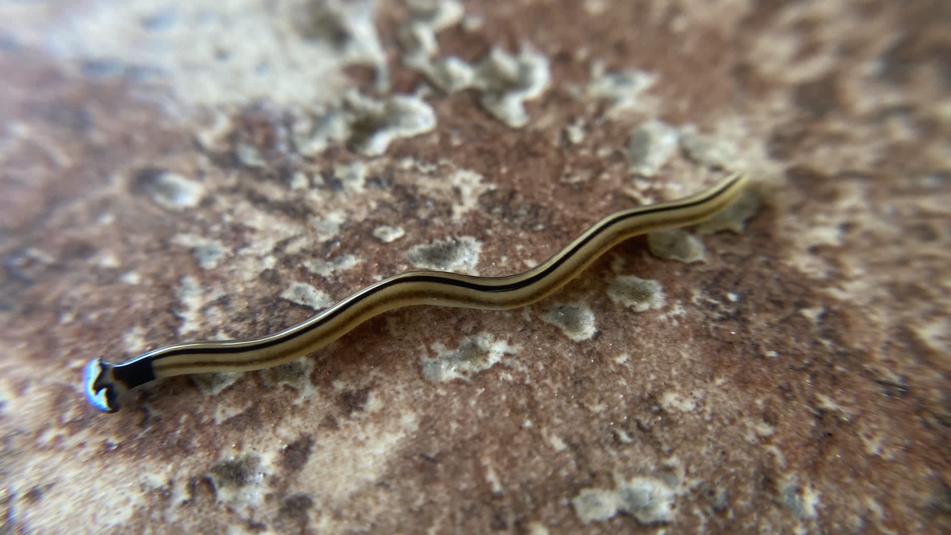 There are various subspecies of hammerhead worm, all with slight differences. However, they all exhibit stripes and a distinctive head shape.