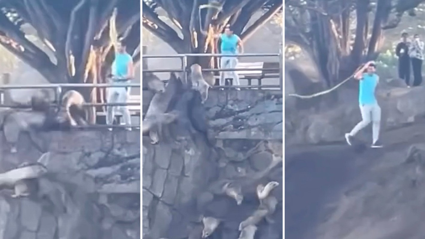 "This idiot was erratically whipping sea lions with caution tape, causing them to topple down a ledge," the account reported. "Other sea lions then stampeded down the hill as the man continued to wave the tape around."