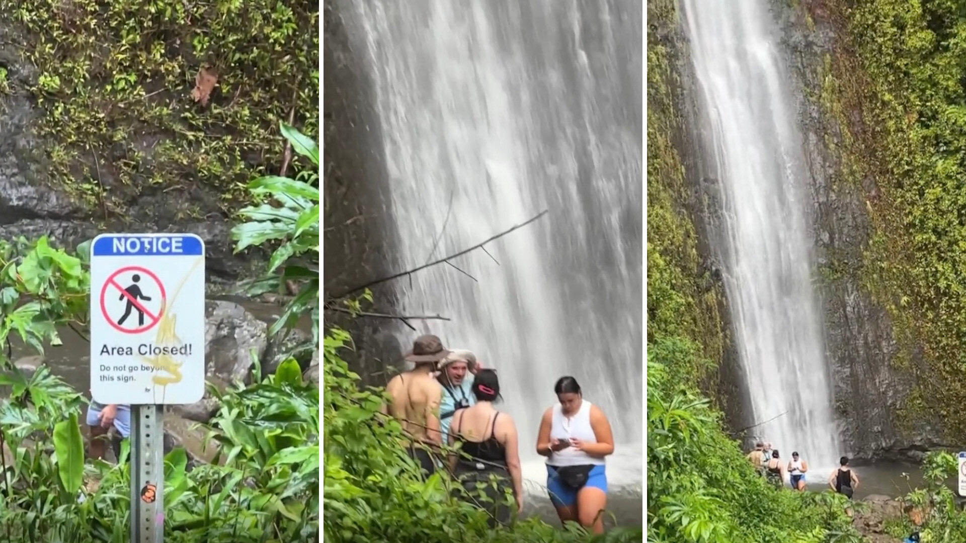 At the base, there is a sign clearly stating the area is closed and to not walk past a certain point. Beyond that sign, and not at all worried about it, are several tourons (tourist + moron) basking in the water, and it's safe to say they aren't illiterate.