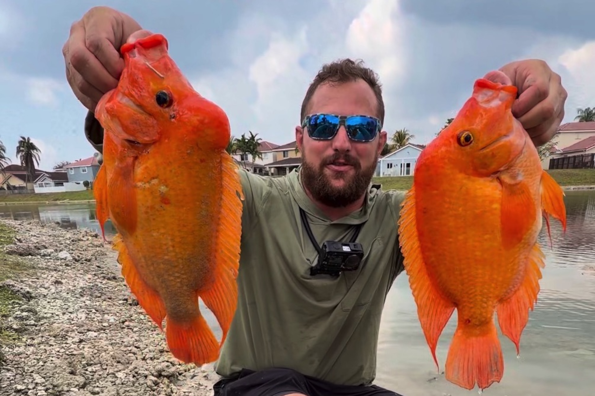 He further explains that the fish are midas cichlids, a non-native species that looks like a goldfish but isn't.