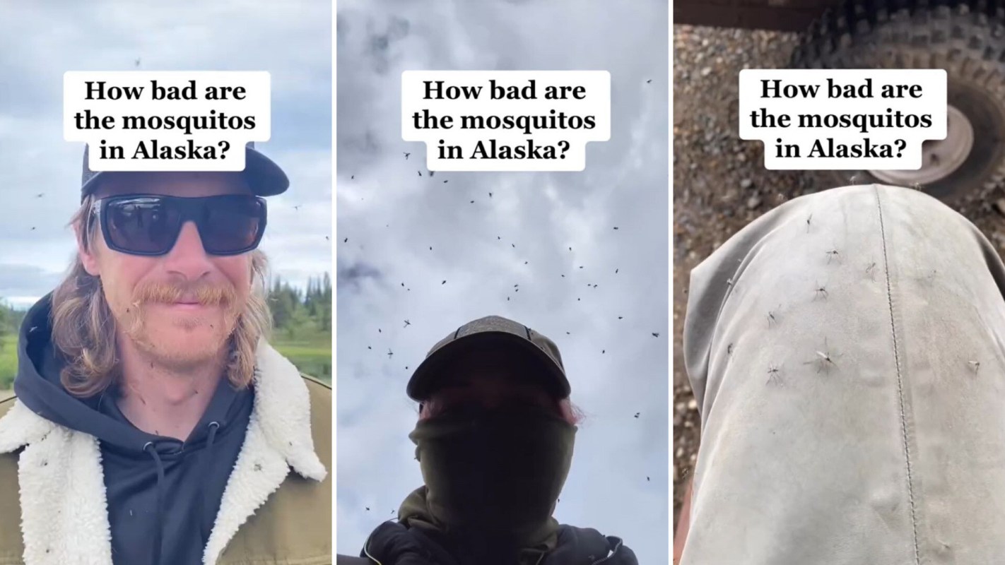 Skylar Lamont (@katmai_sky) posted a seven-second clip of what seems like thousands of mosquitoes filling the air, flying in front of the camera lens, and landing on the unfortunate individuals who are demonstrating the issue.