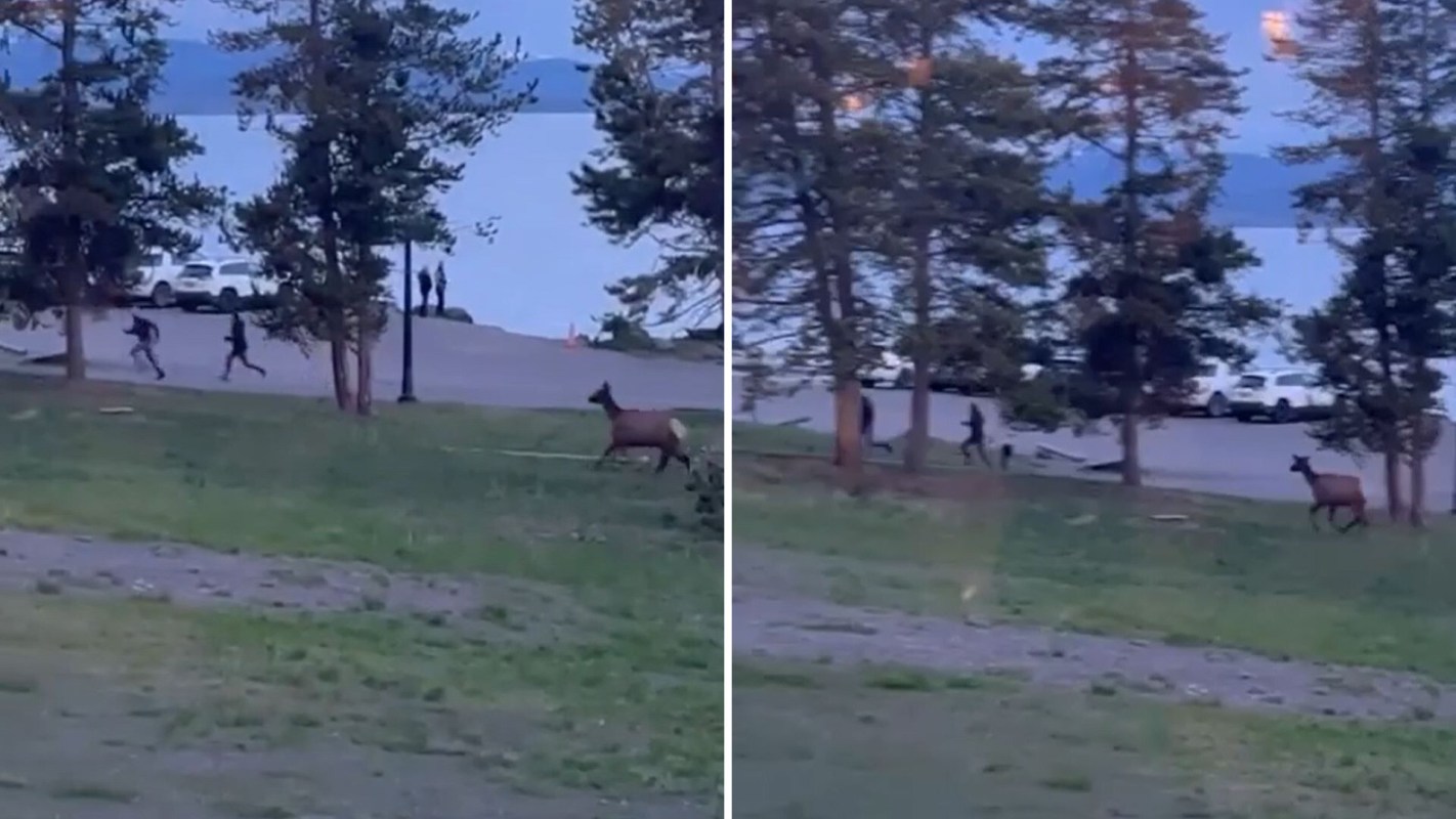 Don't mess with a mother elk. If these tourists at Yellowstone National Park didn't know that before, they certainly do now.