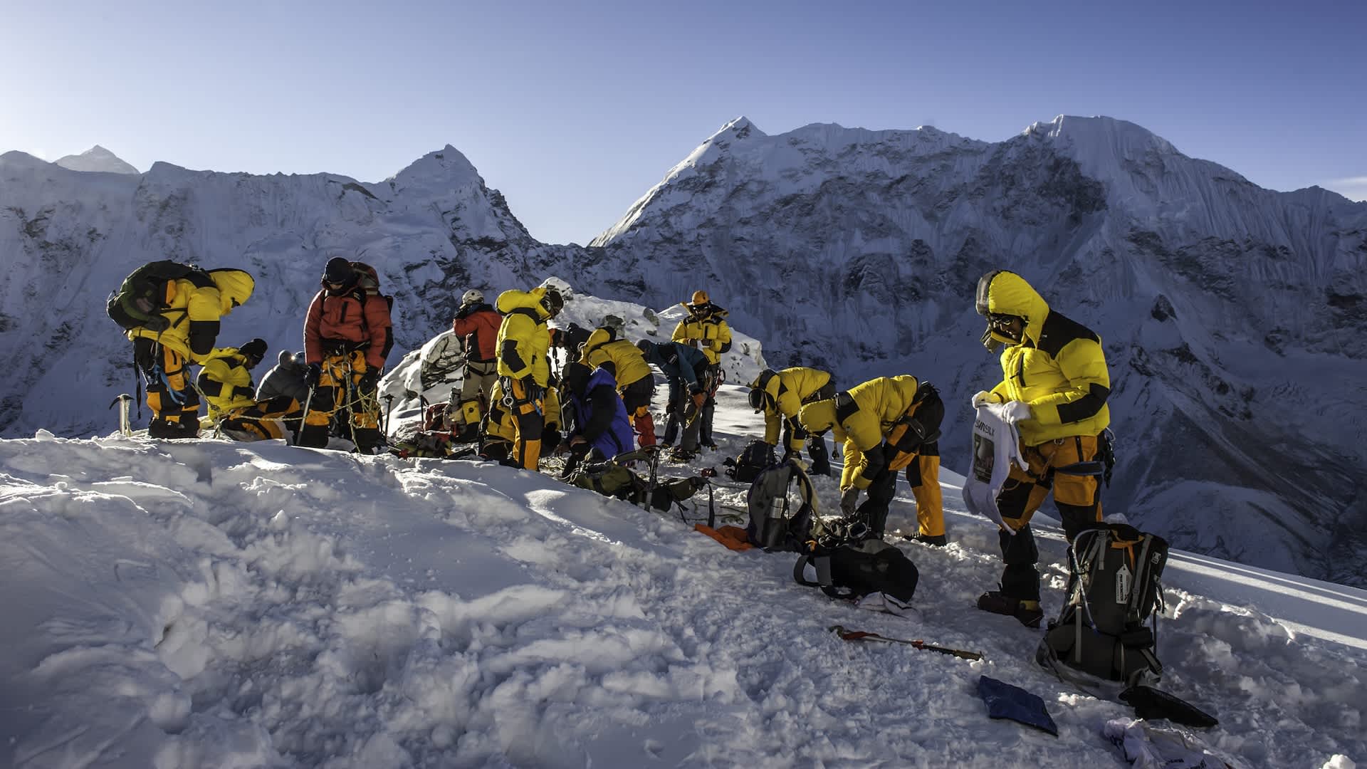 As the drone panned across the peak, a group of climbers was visible, surrounded by a mound of discarded climbing equipment and markers, which was just the tip of the iceberg.
