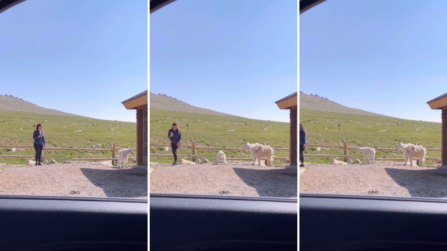 A Colorado-based company, Good Bull Outdoors, recently shared to their Instagram account (@goodbulloutdoors) a video of a tourist getting harshly rebuffed after getting too close to a couple of goats.