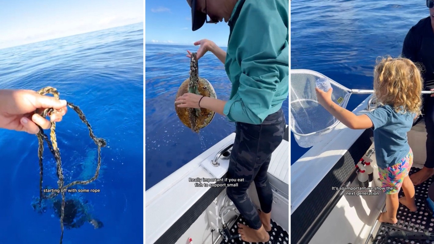 "It's a bummer how much trash is in the ocean," the TikTok account Mermaid Kayleigh (@mermaid.kayleigh) wrote in the video caption. "But I'm glad when I cross paths with debris, now I'm able to grab it and maybe even save one animal's life!"