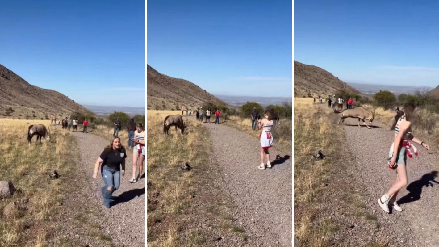 Instagrammer touronsofnationalparks (@touronsofnationalparks) shared a video captioned: "Tourons in New Mexico right outside of Las Cruces getting attacked by an Oryx."