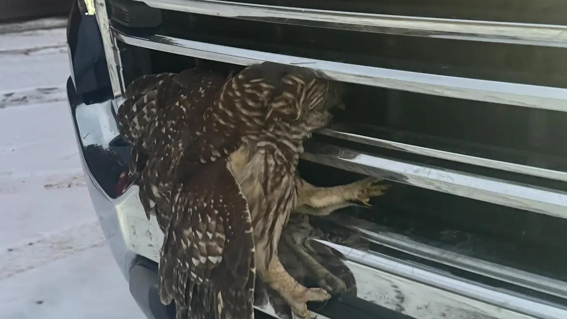 WAVY-TV news reports that Isle of Wight County animal control officer Jessica Brock was driving home when she was flagged down by a neighbor. The neighbor had accidentally hit an owl, which was stuck in the truck's grill.
