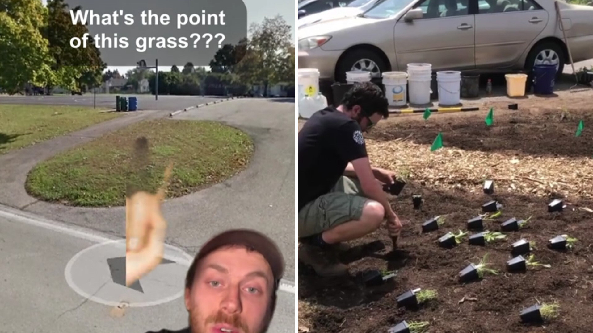 In the video, volunteers dig up the grass and replace it with a gorgeous array of wildflowers, including native penstemons, butterfly milkweed, common milkweed, goldenrod, asters, and sedges.