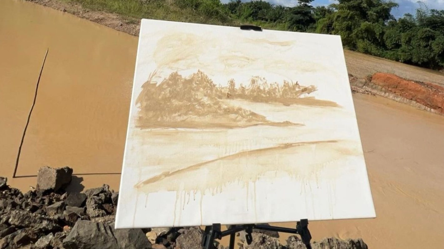 The water in Ghana's Pra River is so polluted from illegal gold mining that one artist was able to paint with it to express the environmental destruction caused by greedy industries.