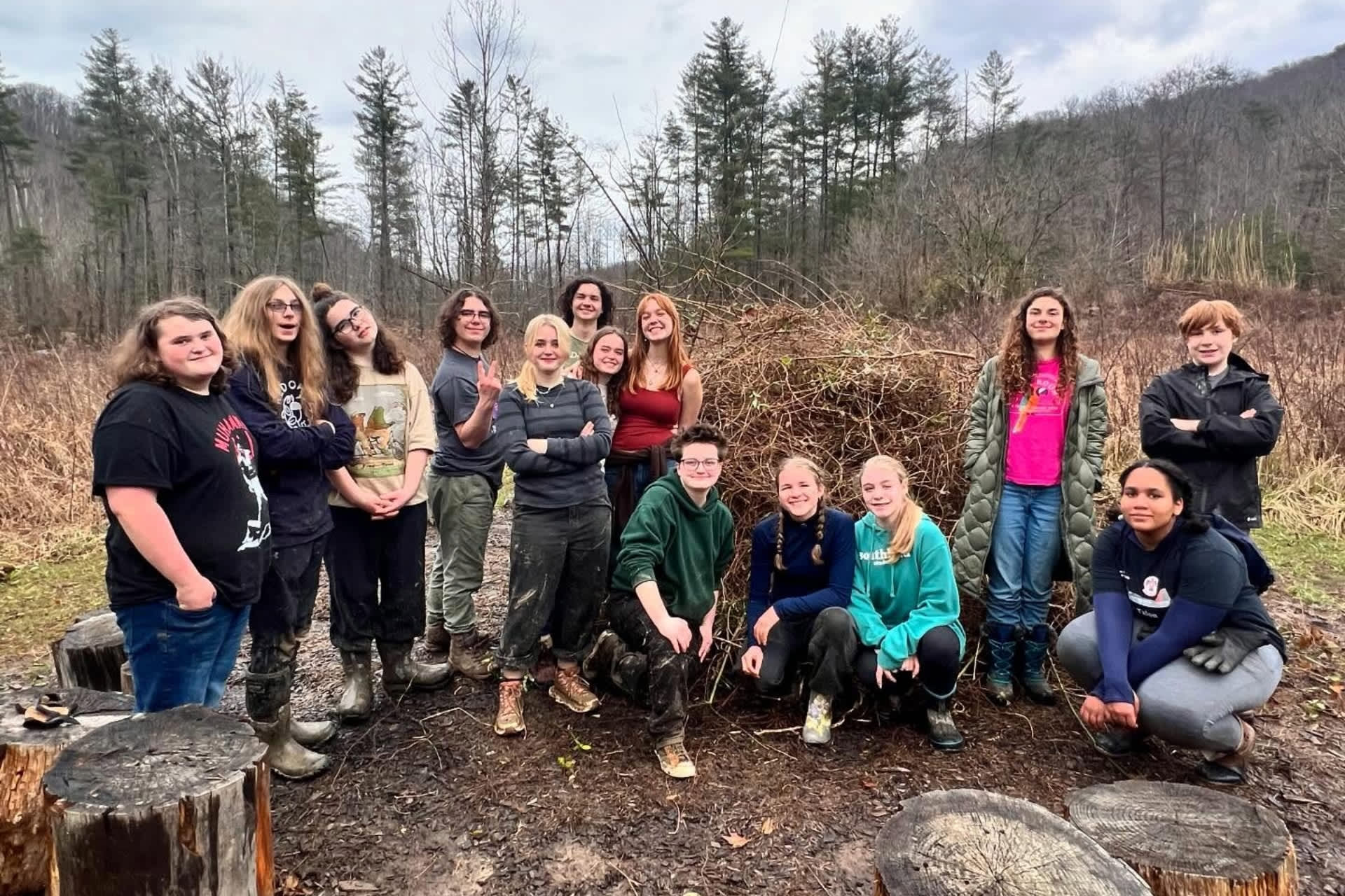 Students in a conservation club at Red Oaks Forest School in Kentucky celebrated after removing invasive plants from a local habitat.