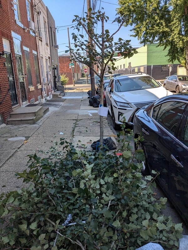 The original poster identified it as a winter king green hawthorn planted by the Pennsylvania Horticultural Society. It was picked specifically because it wouldn't grow tall enough to interfere with nearby power lines. The original poster said they had footage of a neighbor caught in the act and hoped to press charges.